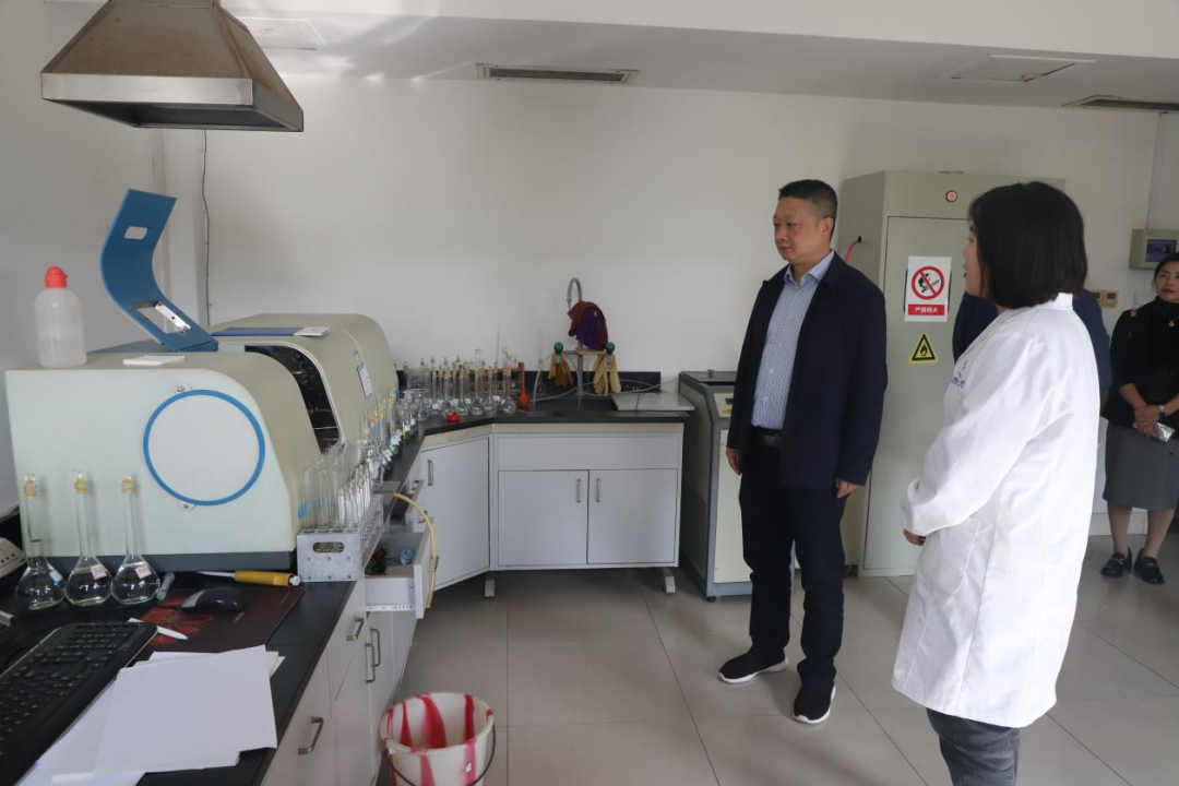 在水质及生物检测公司,周耀宜实地查看检测环境、仪器设备和业务开展情况,重点询问了江南、江北原水及污水的检验检测方法和频次。